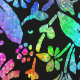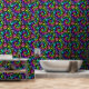 This groovy wallpaper includes a tie-dyed floral pattern in bright shades of pink, blue, yellow and green on black. It's a fun design with a retro aesthetic for hippies who dig the far-out, psychedelic vibe of the 1960s and 70s bohemians.