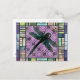 This textured dragonfly is framed by subtle pastel shades of blue, lavender, and green stained glass.