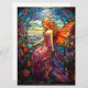 The fairy's wings and the background, reminiscent of Tiffany-style stained glass, reflect a mosaic of iridescence, casting a soft, ethereal glow when kissed by sunlight. Each petal, every curve of the fairy's dress, and the delicate details of the flowers tell a story of timeless elegance and enchantment.