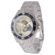 Has heft and feel of expensive stainless steel quartz watches. Good band with safety catch. I removed links, which is easy because engraved arrows show direction to push the linking pins. As always by this seller, the image (a railroad logo) is a perfect reproduction of my emailed image, and is precisely spaced and aligned.