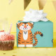 This happy tiger has a personalised gift for your loved one on this cute gift wrap.