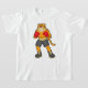 100% cotton so perfect for summer, It is a nicely designed t-shirt, the fabric is soft and the seams finished well, the body of the t shirt has no side seams. I bought a medium size for my two grandsons, aged 9 and 8 it will be slightly big on them but I would rather that than too small