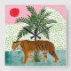 Tiger at Sunrise II by Melissa Wang. A tiger walks past a tropical tree as the sun moves across the sky. | 164403D