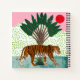 Tiger at Sunrise I by Melissa Wang. A tiger walks past a tropical tree as the sun moves across the sky. | 164402D