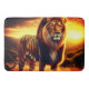 This bath mat has a tiger lion pictured on it.