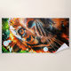 This beach towel has a tiger pictured on it.