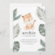 A sweet watercolour tiger with green leaves along the sides. Perfect for your tiger themed Birthday party!