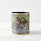 Start your morning with a Roar! Two-tone coffee mug with image of a tiger created from original artwork by Sherrie H Sinclair: dropr.com/sherriehsinclair