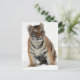 Beautiful portrait photograph of a tiger cub in the snow with snow on his/her nose.