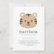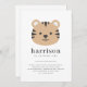 An invitation featuring a sweet tiger face design, perfect for your little one's Birthday party!