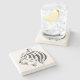 The coasters are gorgeous, a quality feel and heavy weight. They look like a precious archeological find. A rustic stone juxtaposed with a modern floral black and white print. I like the way the print goes slightly imperfect on the cut stone edges giving them a kind-of natural beauty.