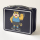This is a standard metal lunchbox that appears to work just fine. We designed this box ourselves with an uploaded photo and custom text on the front and back. It looks absolutely beautiful except the front of the lunchbox is not centered like it shows in the photo. The print borders don't align with the inset flat part of the box where the preview photo online showed it perfectly centered in there. The back looks nice and centered though.