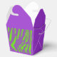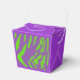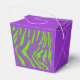 A modern wild tiger fur pattern in purple and green accents these favor boxes.