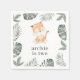 A sweet watercolour tiger with green leaves along the sides. Perfect for your tiger themed Birthday party!