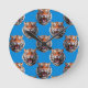 Tiger Head Pattern Design Blue Round Clock