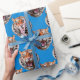 Seamless Repeat Roaring Tiger Head Pattern Design On Blue Background