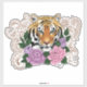 Tiger portrait with pink and light purple flowers. Henna all around the tiger in a backdrop of green.