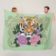 Tiger Henna Pink Purple Flowers Fleece Blanket