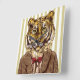 This design features a tiger wearing a smart jacket and red bow tie.