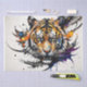 A close-up of a tiger in a bold, pop art style with graffiti influences. The tiger's features are accentuated with vibrant, modern colours, creating a dynamic and energetic look. The background is white, with bursts of colourful, vivid hues surrounding the tiger, enhancing the contrast and bringing the piece to life in a contemporary, striking way