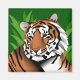 Tiger wildlife art portrait with green background foliage