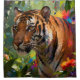 A beautiful tiger stands in a green jungle, rendered in splash art, makes a beautiful wildlife-themed shower curtain. Modern art style, perfect for anyone who loves big cats, animals, and nature.