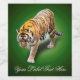 A photograph of a tiger walking towards you on a colourful green gradient background. You can add text below to personalise your label or delete the text.