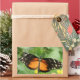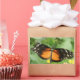 This stunning sheet of stickers features a photograph of a beautiful tropical butterfly. This species is called a Tiger Longwing Butterfly (Heliconius hecale). It has beautiful orange patches on each wing. The rest of the wing is black and is patterned with white spots. It comes from South America. The photograph was taken using macro photography for a stunningly detailed result.