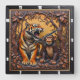 Tiger Monkey Jungle Carved Square Wall Clock