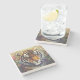 The coasters are gorgeous, a quality feel and heavy weight. They look like a precious archeological find. A rustic stone juxtaposed with a modern floral black and white print. I like the way the print goes slightly imperfect on the cut stone edges giving them a kind-of natural beauty.