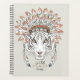 This artwork features a boho-style design portrait of a tiger in a Native American Indian's headress.