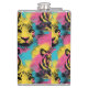 Tiger Pop Art Pattern in Pink, Yellow and Blue Hip Flask