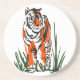 Three colour silkscreen print of a tiger stalking in the grass. Bring a touch of the jungle to your sun room or rec room. Customise for a wildlife safari or conservation campaign.