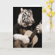 Minimalist, stylized artwork featuring a white tiger playing an acoustic guitar. Dramatic contrast and clean lines create a serene, artistic vibe for home items.