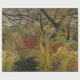 This design features a painting by the French Post-Impressionist artist Henri Rousseau (1844–1910). It shows a tiger caught in a tropical storm. The tiger is in a green and verdant jungle with many leaves and trees. There is thunder and lightning in the sky. The artwork is painted in a naive and child-like style, making it particularly attractive to children, and it was first produced in 1891.