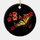 Tiger Swallowtail Butterfly on Red Flowers Ceramic Tree Decoration