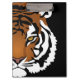 Beautiful minimalistic abstract vector art of a tiger head facing forward in bold colours.
