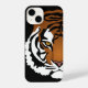 Beautiful minimalistic abstract vector art of a tiger head facing forward in bold colours.
