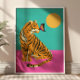 This colourful funky art poster features a bold tiger paired with a delicate butterfly, creating a striking contrast between strength and softness. Rendered in vibrant hues with playful, expressive details, the design blends whimsical charm with modern flair. Perfect for adding a pop of colour and personality to eclectic, boho, or maximalist spaces, it makes a fun statement piece for animal lovers and art collectors alike.