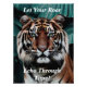 A beautiful A.I generated picture of a tiger in front of dark green tropical leaves with a motivational quote