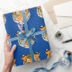 Wrapping paper shown with a cute tiger print on a blue colour background.