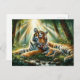 Tigers in a Lush Jungle Watercolor Painting Postcard