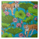 Hand -drawn vector tigers and lotus flowers and leaves pattern