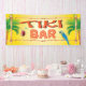 Tiki Bar banner sign for beach theme party or luau event. Colourful design with bamboo frame, palm trees, fun fonts, parrot, and tropical drink. Choose indoor or outdoor quality banner.