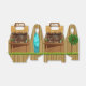 Adorable print bamboo and palm leaf Tiki Bar with tropical cocktails, surf boards and palm trees