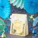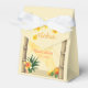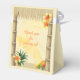 A graphic design of Tropical Luau Hawaiian Party Tiki Hut by artist/designer Charmaine Paulson on party favour box. The box has text templates for your personalisation. ©2014charmainepaulson