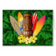 Hawaiian Tiki Mask with some retro vintage surfboards and yellow hibiscus flowers, the state flower of Hawaii.