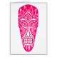 A card with an original hand drawn Tiki Mask style face in a bold woodcut style. Card is plain inside, which can be further customised. A smaller version of the main image is also shown on the back of the card.