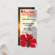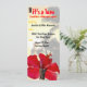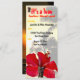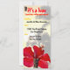 Colourful and fun luau invitations in a unique long shape with a touch of the tropics, featuring an authentic Hawaiian wooden tiki and palm trees along the beach.