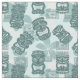 Fun Tiki heads against a background of tropical flowers and Polynesian symbols. A great fabric for your retro sewing project!